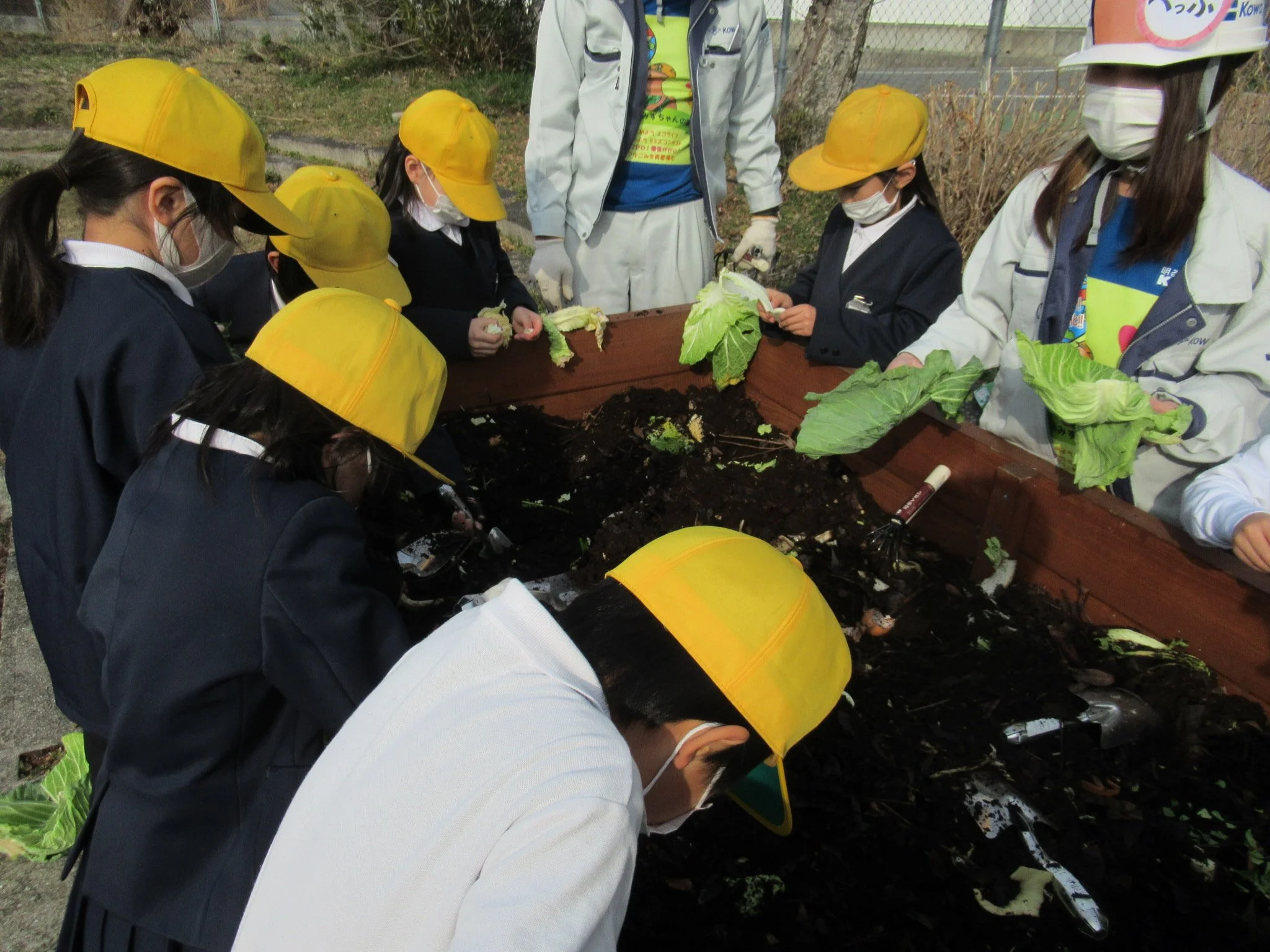 地域の子どもたちと授業でミミズコンポストに取り組む様子。